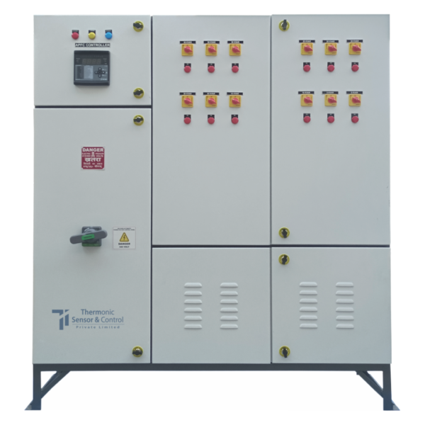 APFC control panel maintains power factor automatically for efficient energy usage.